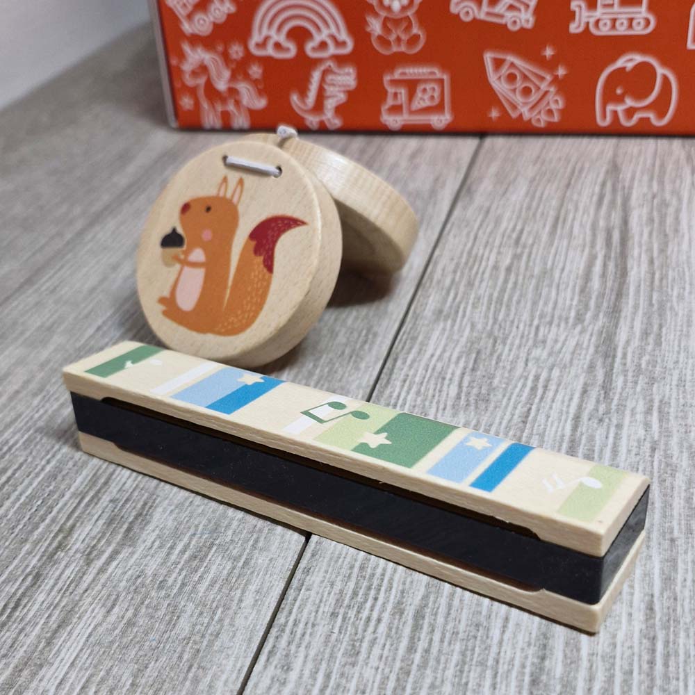 Meet the Personalised Wooden Chipmunk Super FUN Pack – a wild collection of five wooden instruments ready to unleash musical chaos! Featuring a harmonica, castanet, maraca, bell stick, and tambourine, each piece is personalised to make it uniquely yours. Whether you're a rhythm enthusiast or just love making joyful noise, this charming set delivers hours of playful fun. A fantastic gift for kids who march to the beat of their own drum!