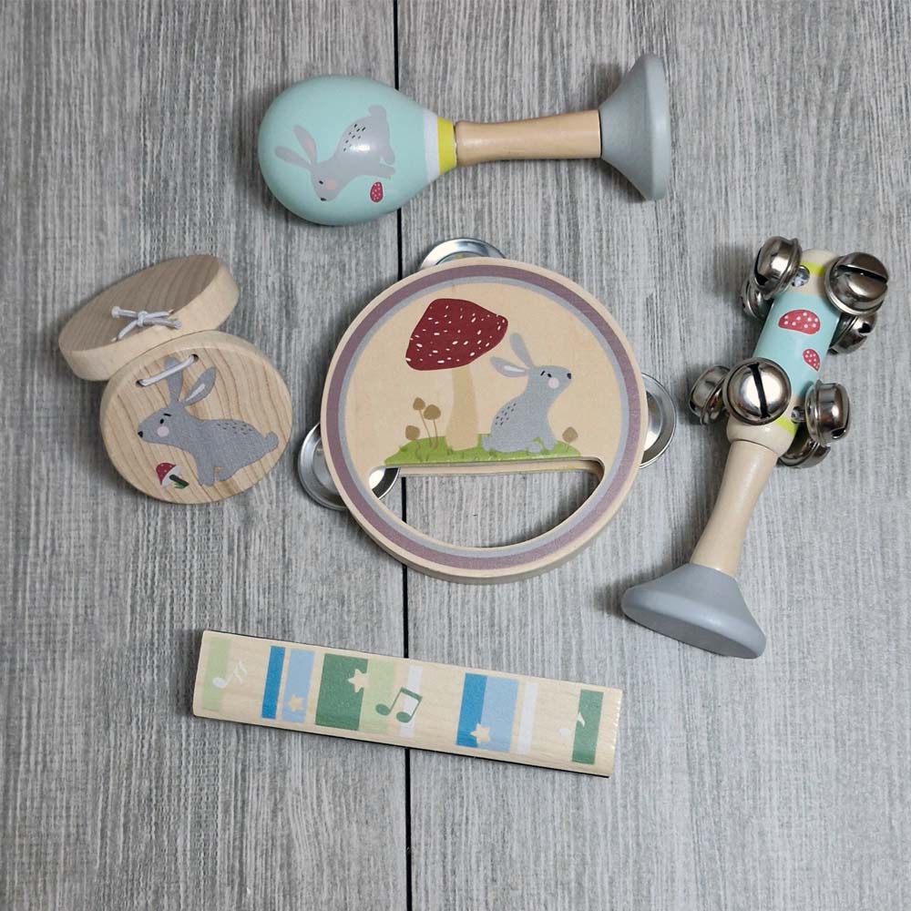 Meet the Personalised Wooden Rabbit Super FUN Pack – a wild collection of five wooden instruments ready to unleash musical chaos! Featuring a harmonica, castanet, maraca, bell stick, and tambourine, each piece is personalised to make it uniquely yours. Whether you're a rhythm enthusiast or just love making joyful noise, this charming set delivers hours of playful fun. A fantastic gift for kids who march to the beat of their own drum!
