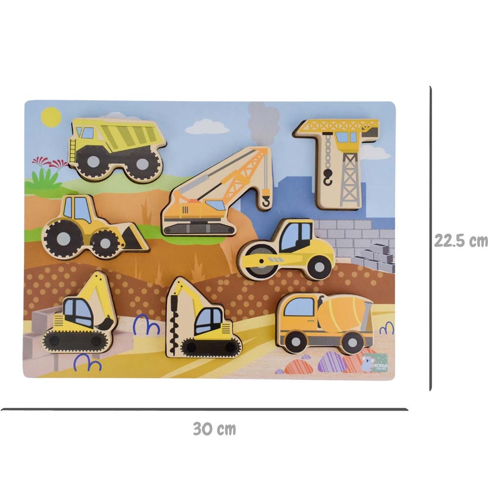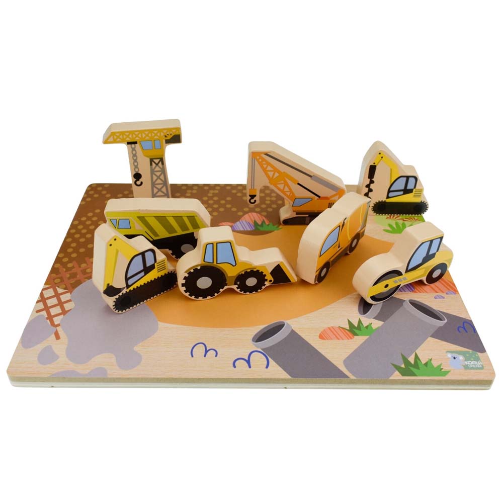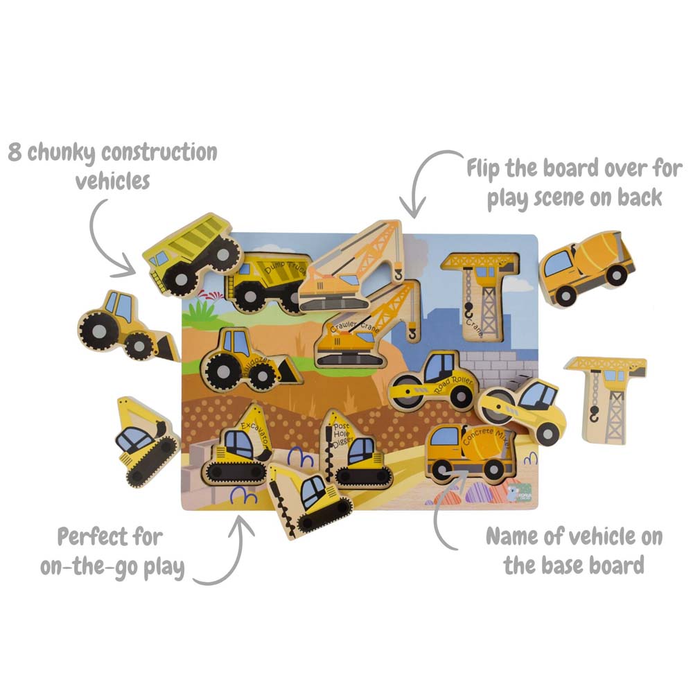 Rev up your little builder's imagination with the Wooden Chunky Construction Vehicle Puzzle from Koala Dreama triple treat of hands-on fun! This clever 3-in-1 wonder is more than just a puzzle: it's also a set of sturdy, chunky vehicle figurines and a construction-themed pretend play board, all rolled into one busy worksite of joy. Each vibrant wooden vehicle is easy for little hands to grasp, perfect for puzzling and zooming around in make-believe construction zones. Underneath each puzzle piece, little learners can discover the name of the vehicle, turning playtime into a fun vocabulary lesson. Thenflip it over! The back of the board reveals a bustling birds-eye view of a construction site, setting the scene for hours of imaginative role play. Crafted from high-quality wood and painted with non-toxic, child-safe paints, this Aussie-designed playset encourages fine motor skills, language development, and creative thinkingall while keeping playtime wonderfully screen-free. Ready, set, construct!